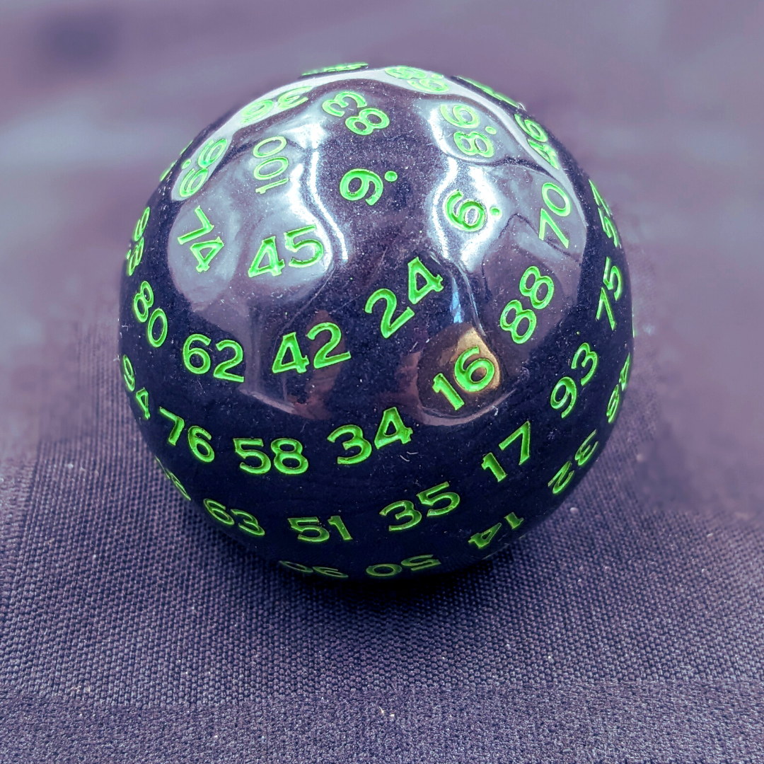 "Thin Mint" - Black Opaque with Green - D100 - Level One Dice