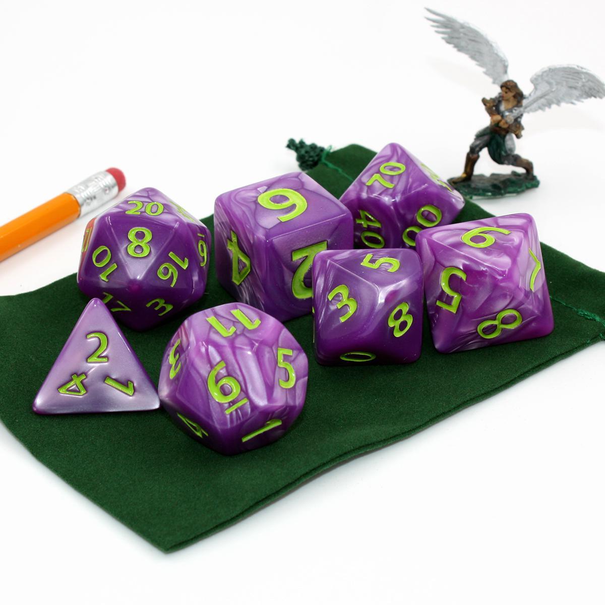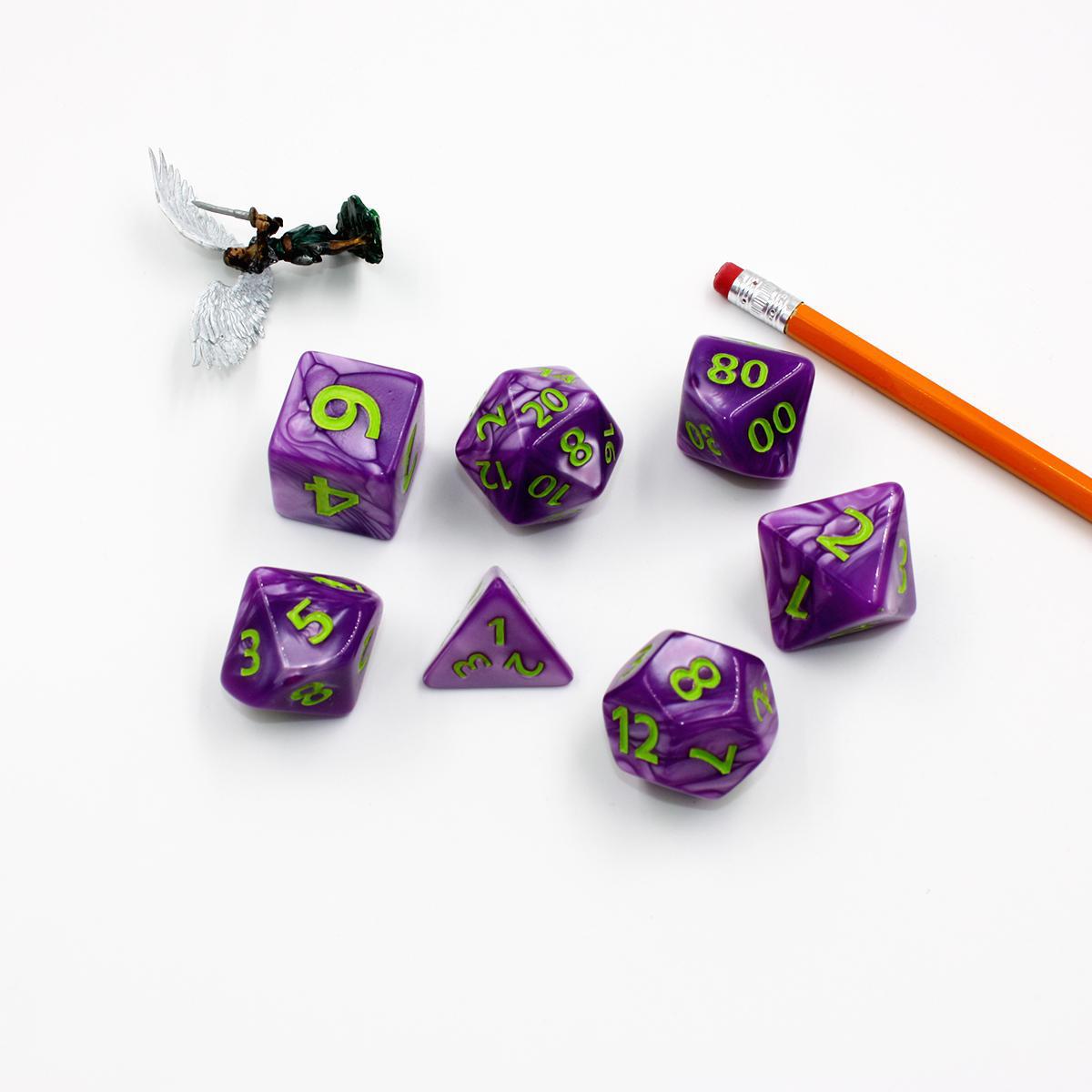 "Witch's Brew" - Purple Marble with Green - Giant Polyhedral Dice (7) - Level One Dice