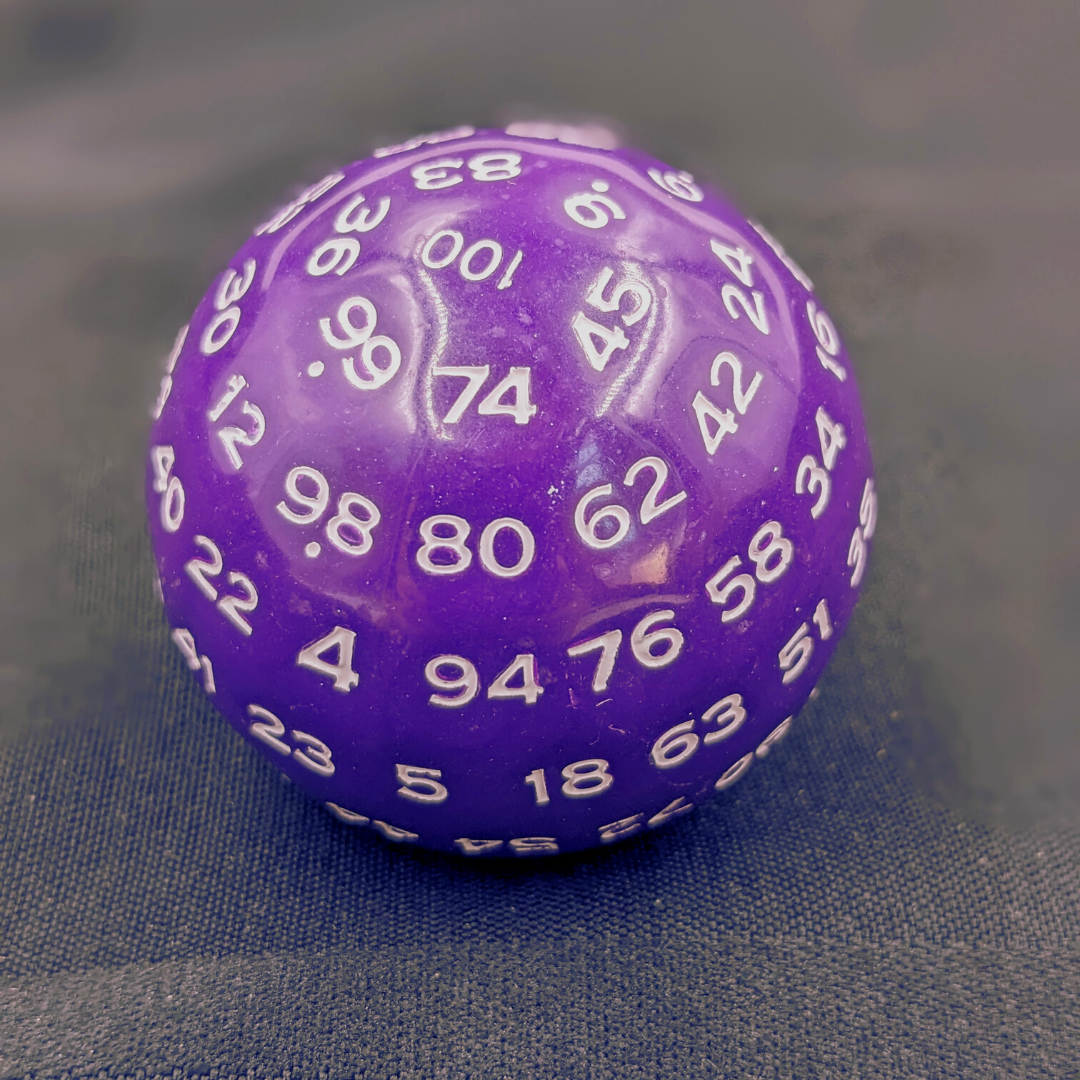 "Grape Jawbreaker" - Purple Opaque with White D100 - Level One Dice