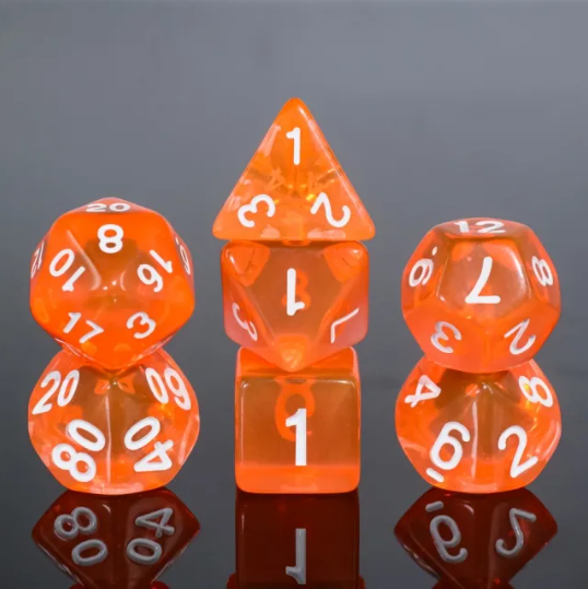 "Hot Habanero" - Orange Translucent with White Inking - Polyhedral Dice (7) - Level One Dice