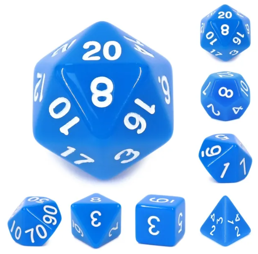 "Rawberry" - Blue with White Inking - Polyhedral Dice (7) - Level One Dice