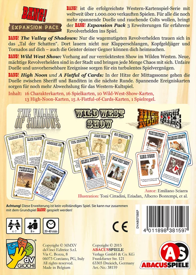 The BANG! Expansion Pack contains the following expansions for BANG!: