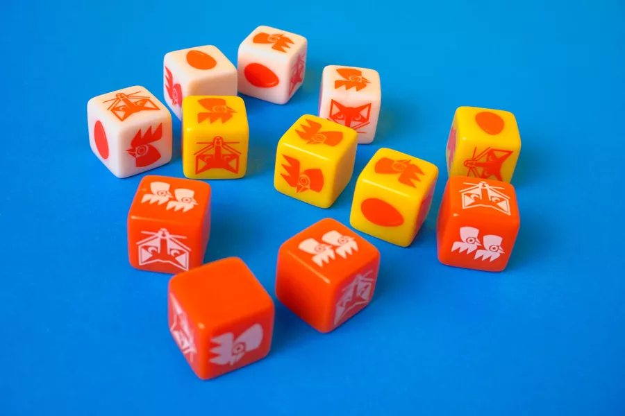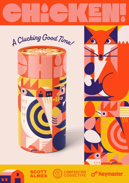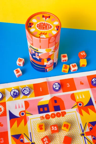 Pop open the tube and start chucking dice with family and friends! In Chicken!, players will be rolling dice each turn, pressing their luck to score more Chickens while avoiding those foxes.