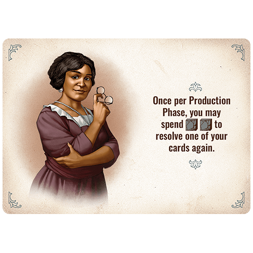 Furnace also includes capitalist cards that contain unique effects, and if you want, you can choose to deal one out to each player at the start of the game. For an additional challenge, you can require players to create a “production chain”, with each newly acquired company card being placed somewhere in that chain and locked in position for the remainder of the game.