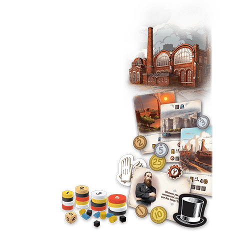 Furnace is an engine-building Eurogame in which players take on the roles of 19th-century capitalists building their industrial corporations and aspiring to make as much money as they can by purchasing companies, extracting resources, and processing them in the best combinations possible.