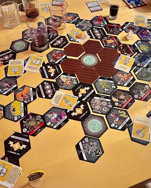Heroes of Barcadia is a 2-6 player tile-based, dungeon-crawling tabletop party game with a liquid twist: your character’s health is measured by the drink in your glass.