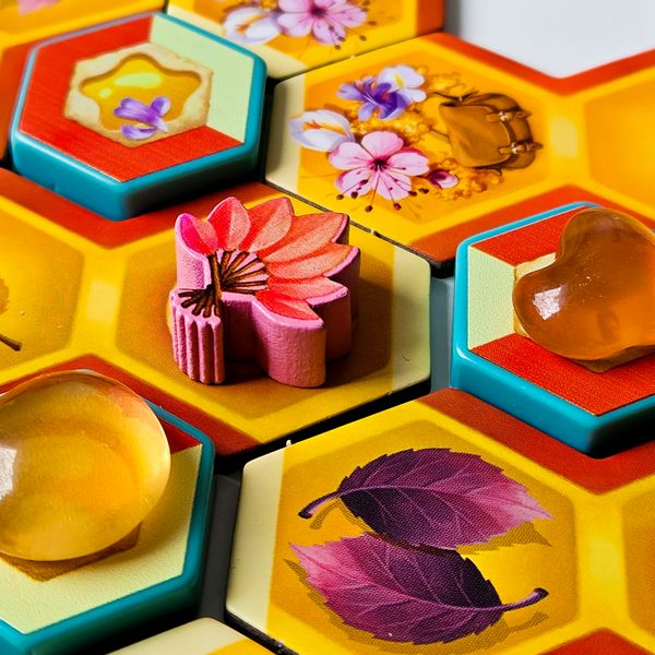 Autumn Leaves Module – Collect colorful leaves found on the new leafy hive tiles as a means of decorating your hive for the queen. Score points for the leaves in your hive, based on the foliage card in play for that game.