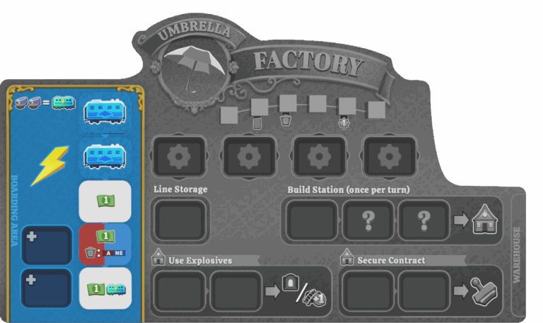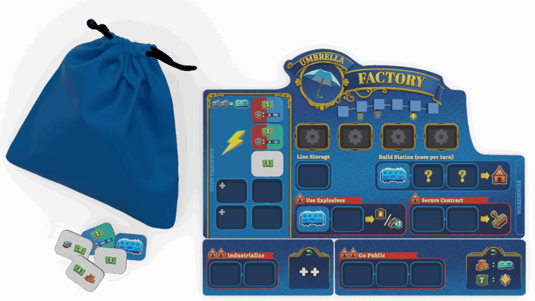 Build your bag to improve your company's resources, then place your chips to open stations and train lines across eight regions of North America. There's a fortune to be made by delivering goods to the cities that need them... but will you work together, or look to cut out the competition? Which stations do you need to secure a route to victory? How can the powerful lightning trains accelerate you past your rivals?