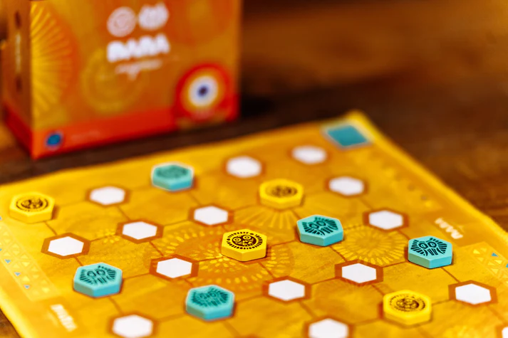 Dara is a traditional 2-player positional game from Nigeria. Each player controls a set of 12 matching animal spirits. Capture at least 10 of your opponent’s pieces by forming lines of 3 of your own animal spirits.