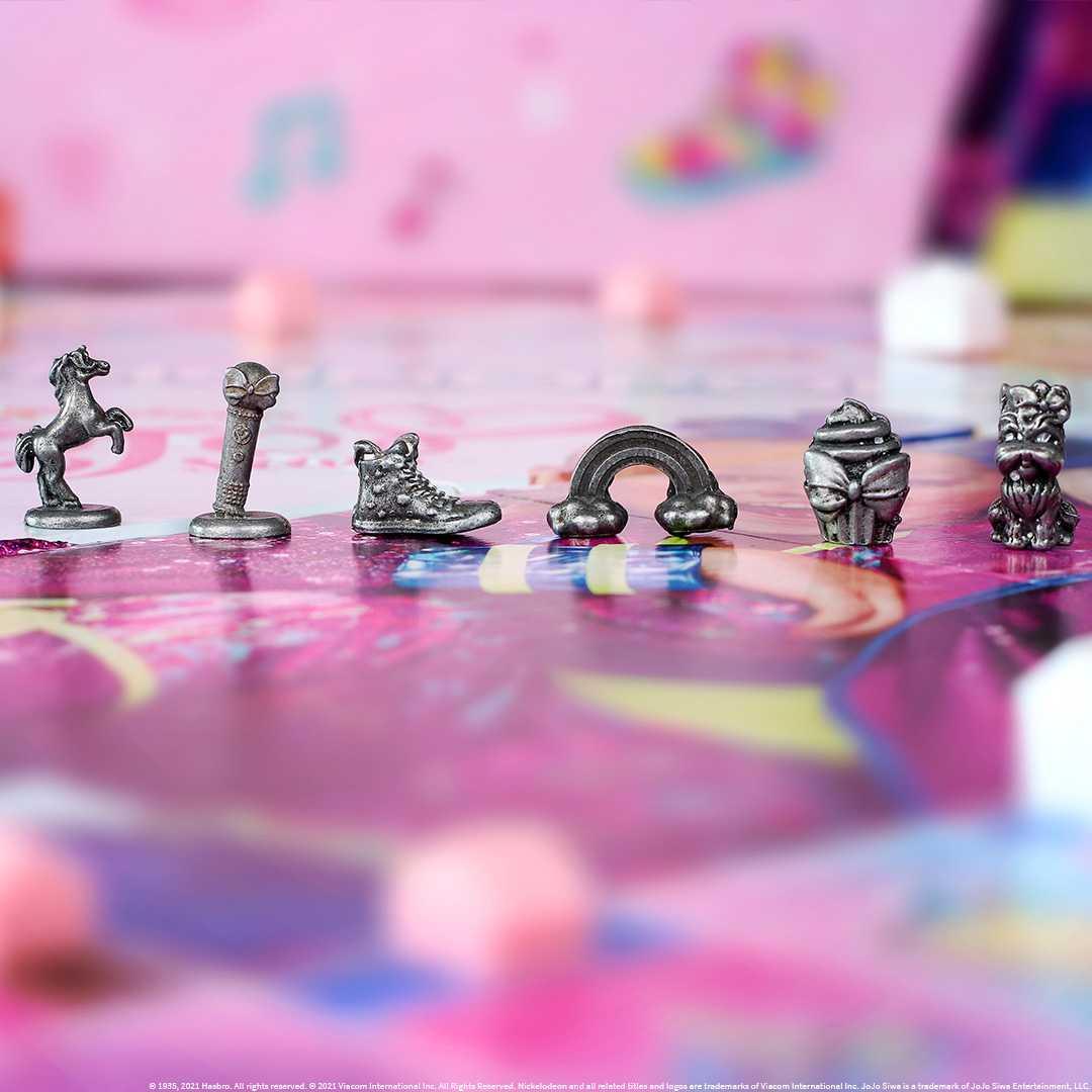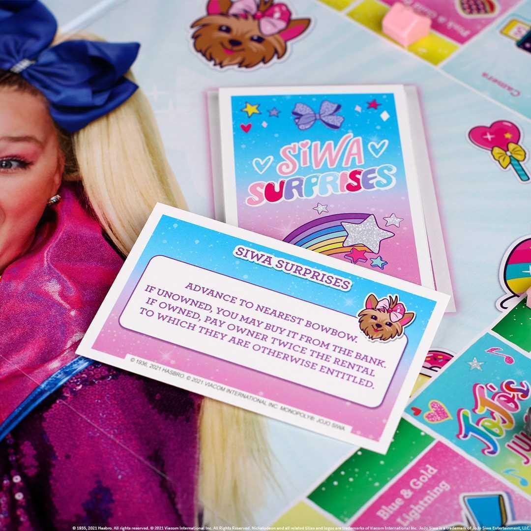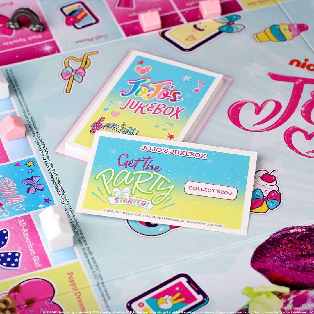 If you dream it, you can achieve it in MONOPOLY®: JoJo Siwa, a fabulous twist on the classic game that packs as much energy and sparkle as the pop star herself! Buy, sell, and trade her signature bows such as Unicorn Horn, Golden Gemstones, Rainbow Glitter and more, while Siwa Surprises and JoJo’s Jukebox set the stage for victory! Choose one of six iconic tokens to boomerang around the board, build valuable Rhinestones and Charms, and earn the most Likes to be the #1U and win!
