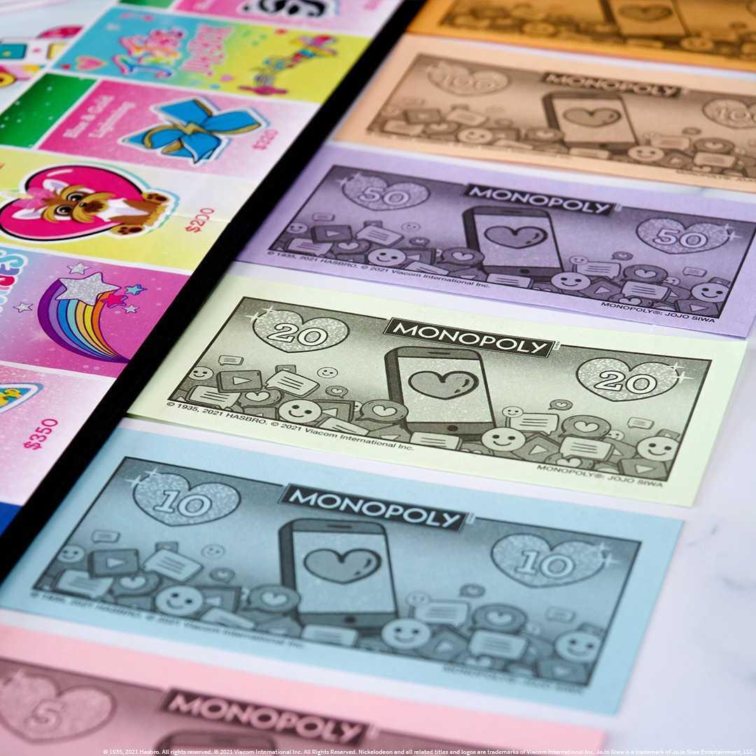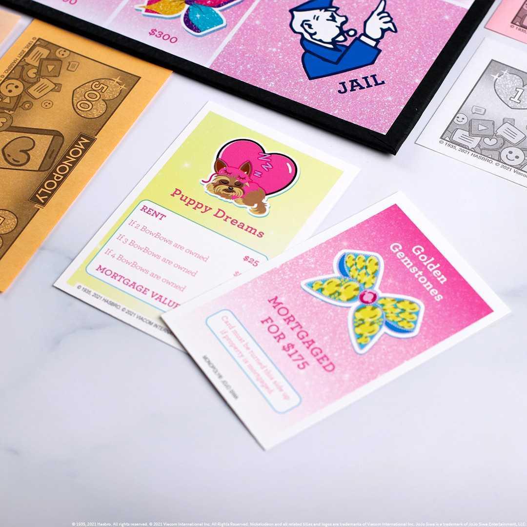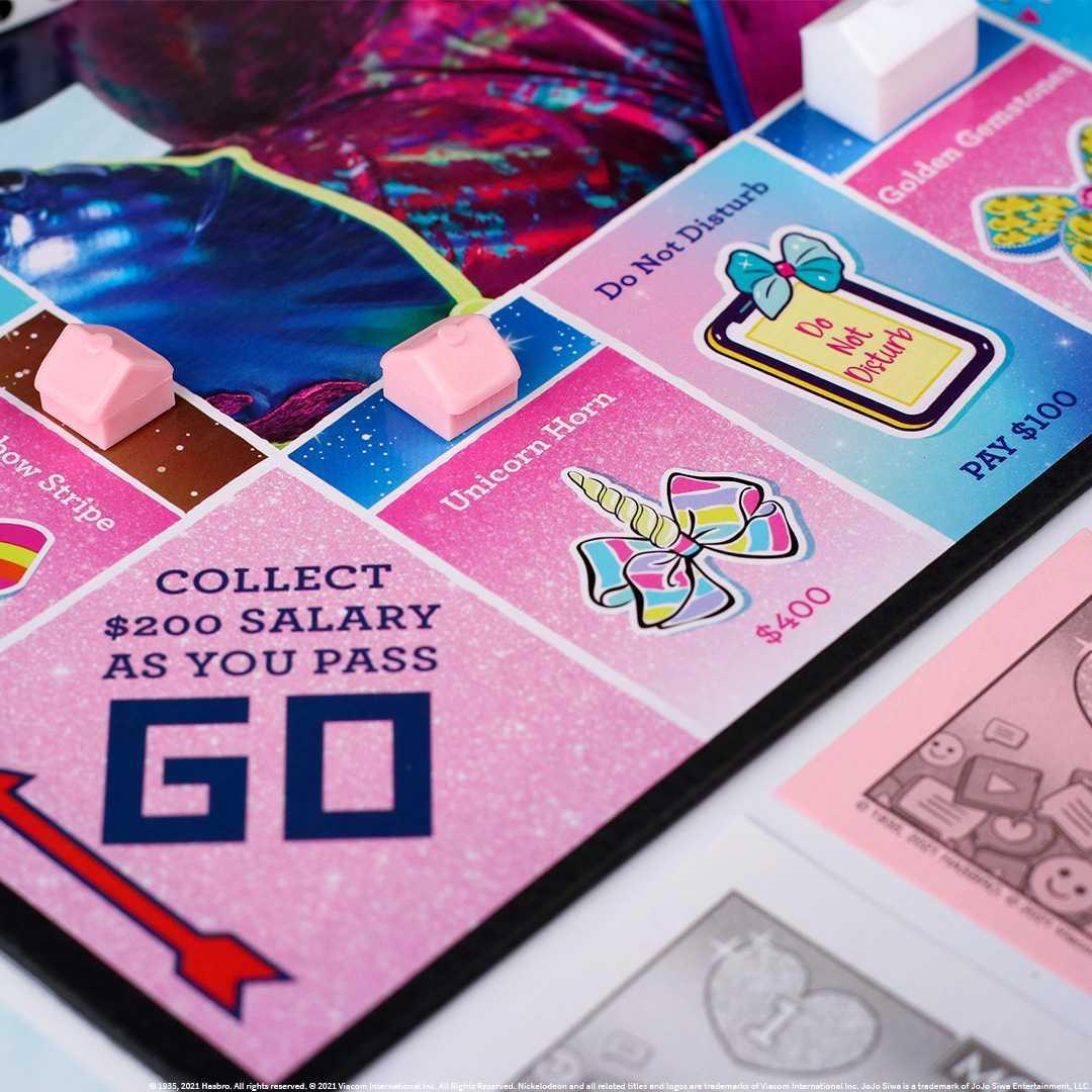 If you dream it, you can achieve it in MONOPOLY®: JoJo Siwa, a fabulous twist on the classic game that packs as much energy and sparkle as the pop star herself! Buy, sell, and trade her signature bows such as Unicorn Horn, Golden Gemstones, Rainbow Glitter and more, while Siwa Surprises and JoJo’s Jukebox set the stage for victory! Choose one of six iconic tokens to boomerang around the board, build valuable Rhinestones and Charms, and earn the most Likes to be the #1U and win!
