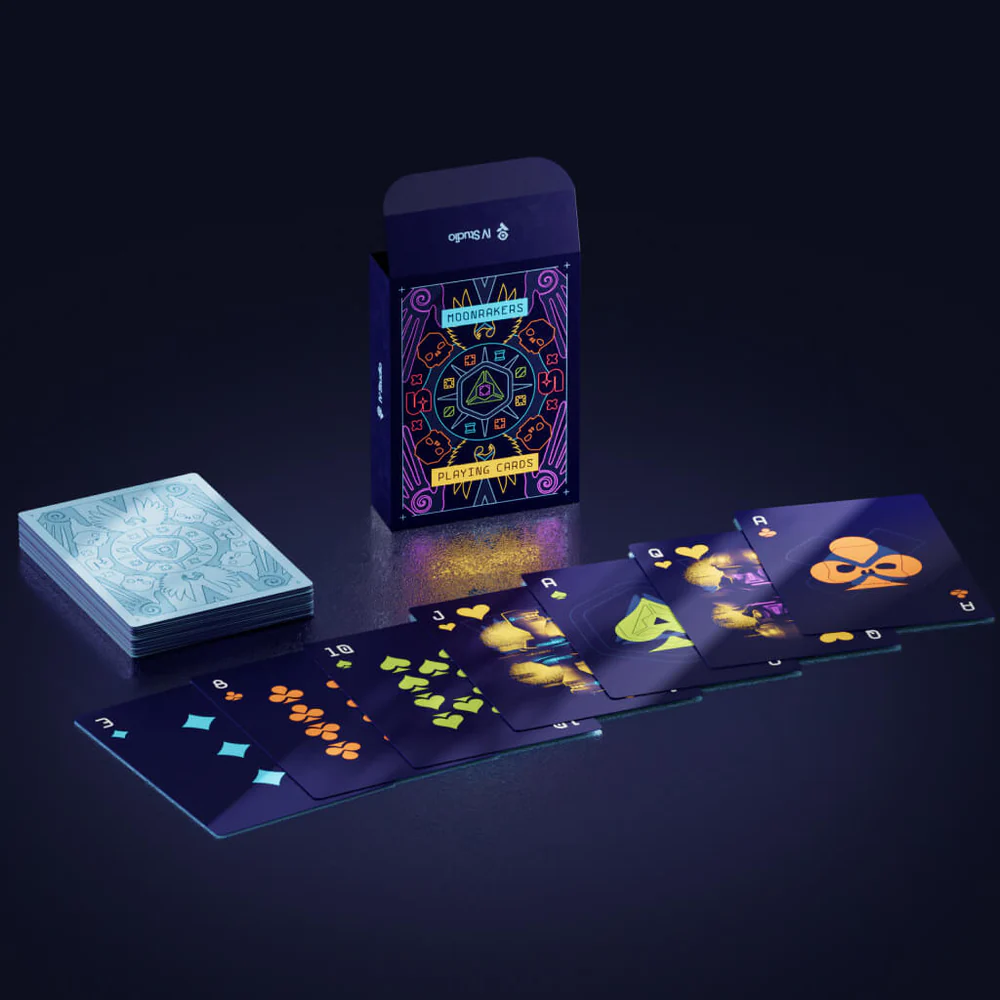 A meticulously crafted deck of playing cards, inspired by the stunning sci-fi world of Moonrakers.