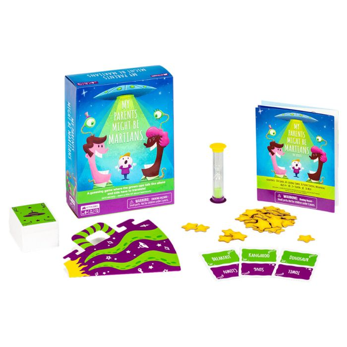 The kids are Human, the grown-ups are Martians, and everyone's laughing! The goal is for the Martians to get their Human friends to guess a word by only using clues with single-syllable words. The Humans have to work together to make sense of your silly speech before the timer runs out. This game is an out-of-this-world way to improve your little ones' teamwork and language skills. Perfect for small family game nights or breaking the ice at big gatherings
