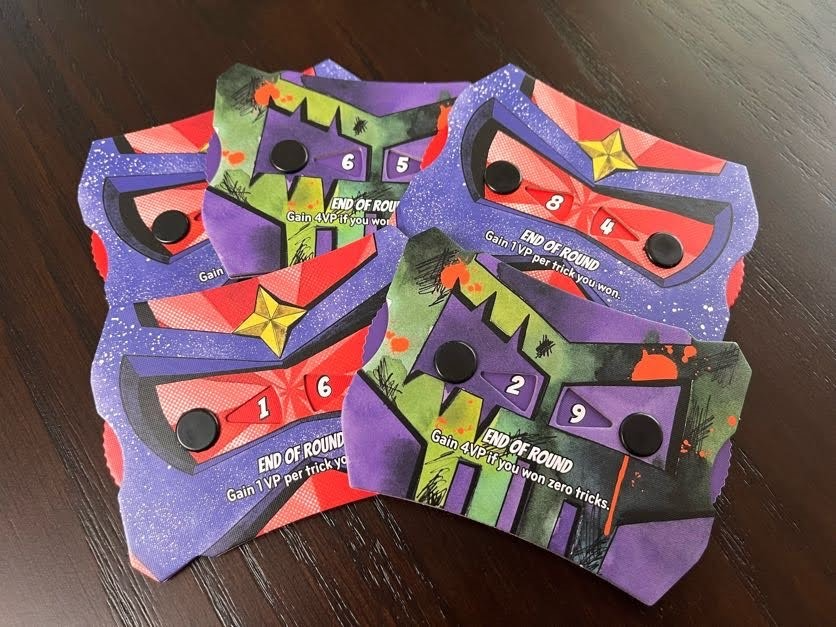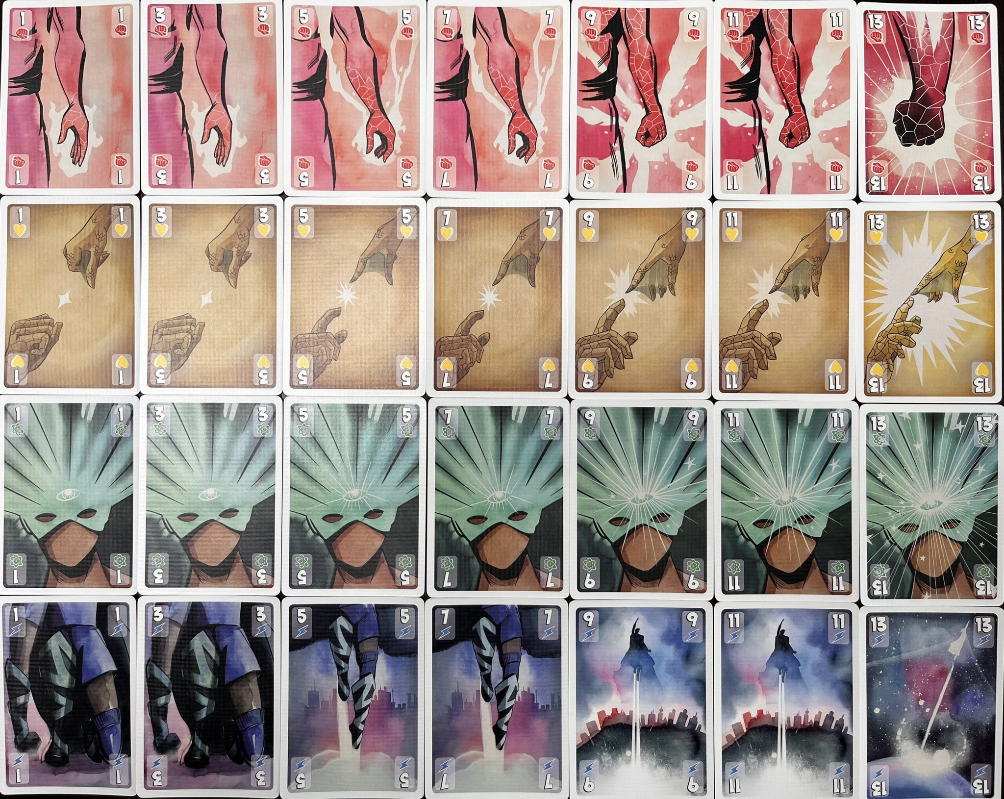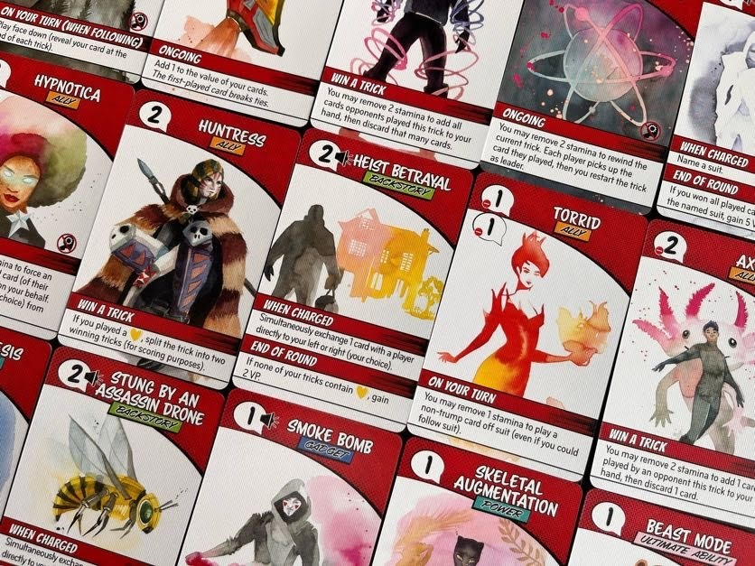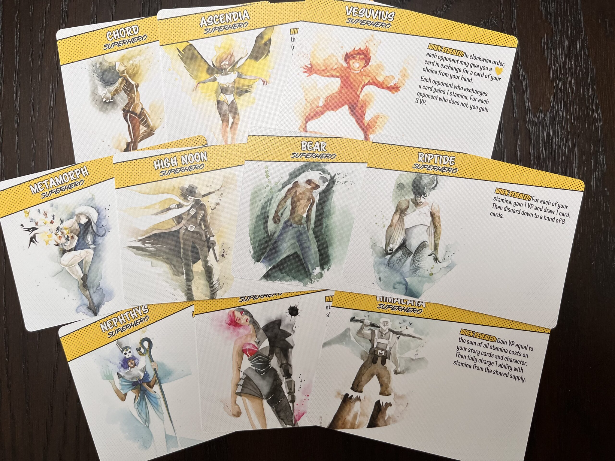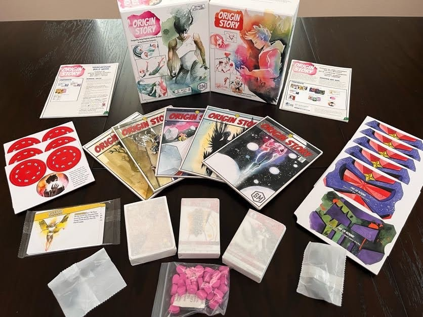 Designed by Jamey Stegmaier and Pete Wissinger, Origin Story is an engine-building, trick-taking game played over 5 rounds. Each round represents a chapter in your development and grants a new card to add to your player mat. Charge your cards and use their abilities to score more points than your opponents.