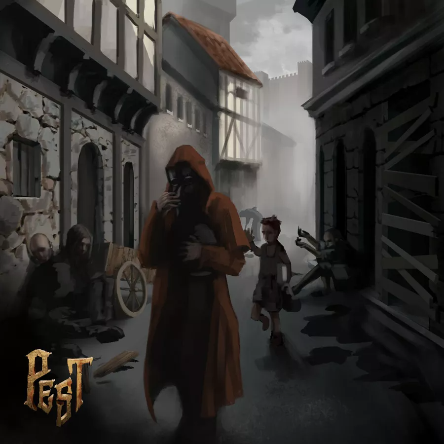 Pest is played in 6 rounds. Each round before players take their turn, a plague card will be revealed which shows how the plague will spread in that round. On their turn, players will be able to select among many actions on their player board using a unique action selection system. Thus, players will be able to move their containment team on the board, quarantine and cure infected people, rebuild, assign workers, harvest resources, and more.