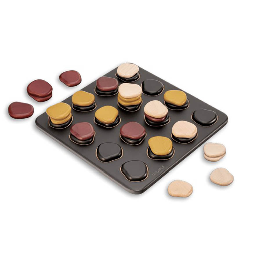 Lay stones on the path and try to line up four stones in your color. Simultaneously simple and tactical, Qawale is inspired piles of stones found along paths. On your turn, add a stone on top of any pile and move it. When moving a pile, you must leave a stone on each space you cross. The first player to get 4 of their stones in a row, looking at the board from above, wins the game.