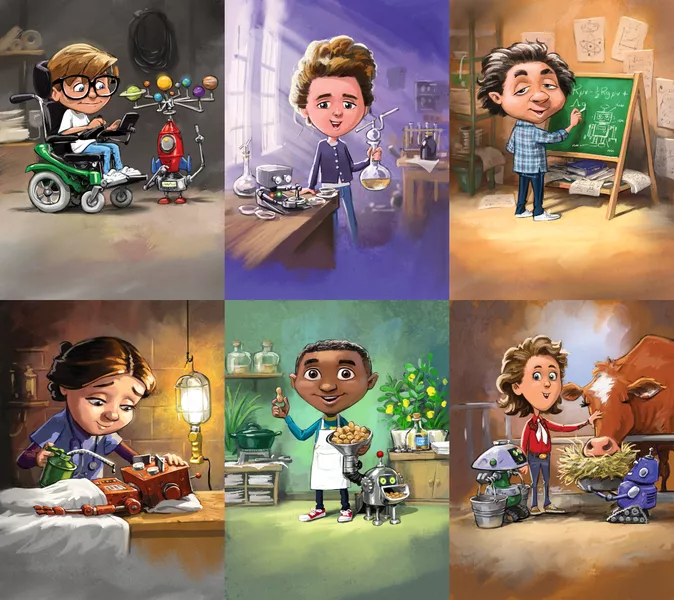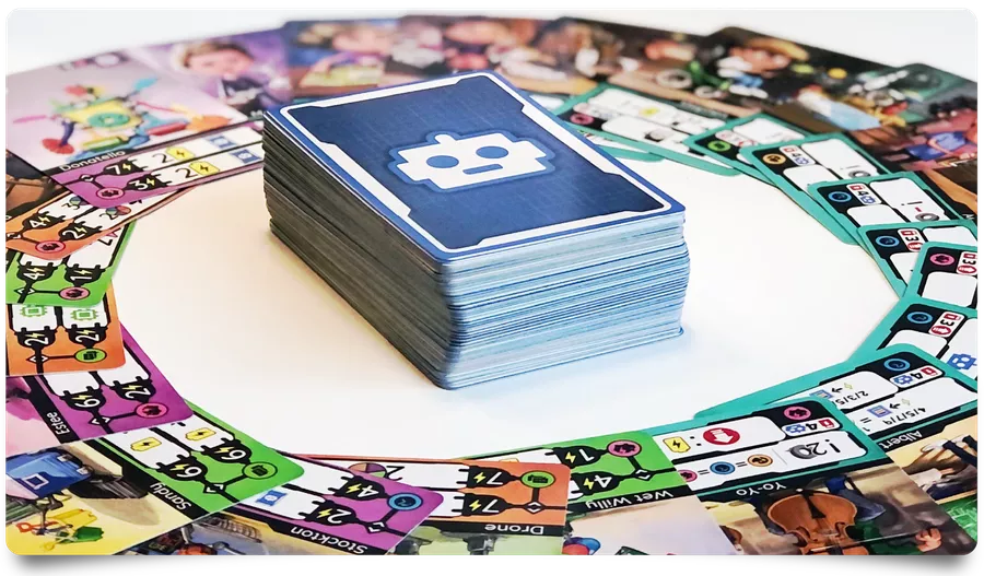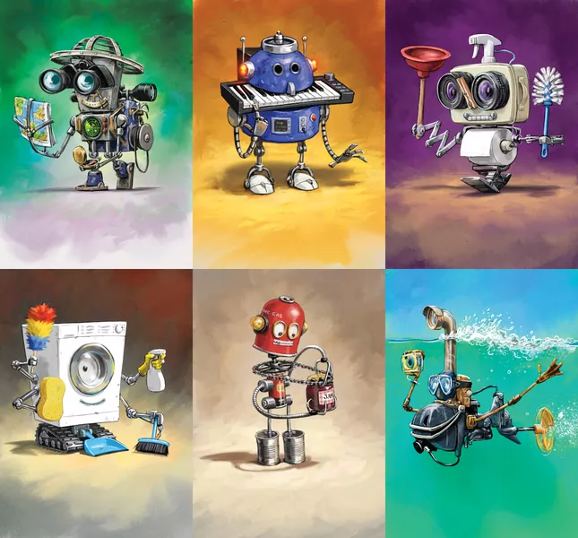 In "Raising Robots," players take on the roles of aspiring inventors, each with a unique game-changing ability reflecting famous inventors from various disciplines. Players earn reputation by assembling robots and getting good grades in school. With the help of their robot companions, players will design new schematics, fabricate parts, recycle resources, and even upgrade robots. The player with the most reputation at the end of the game is the winner.