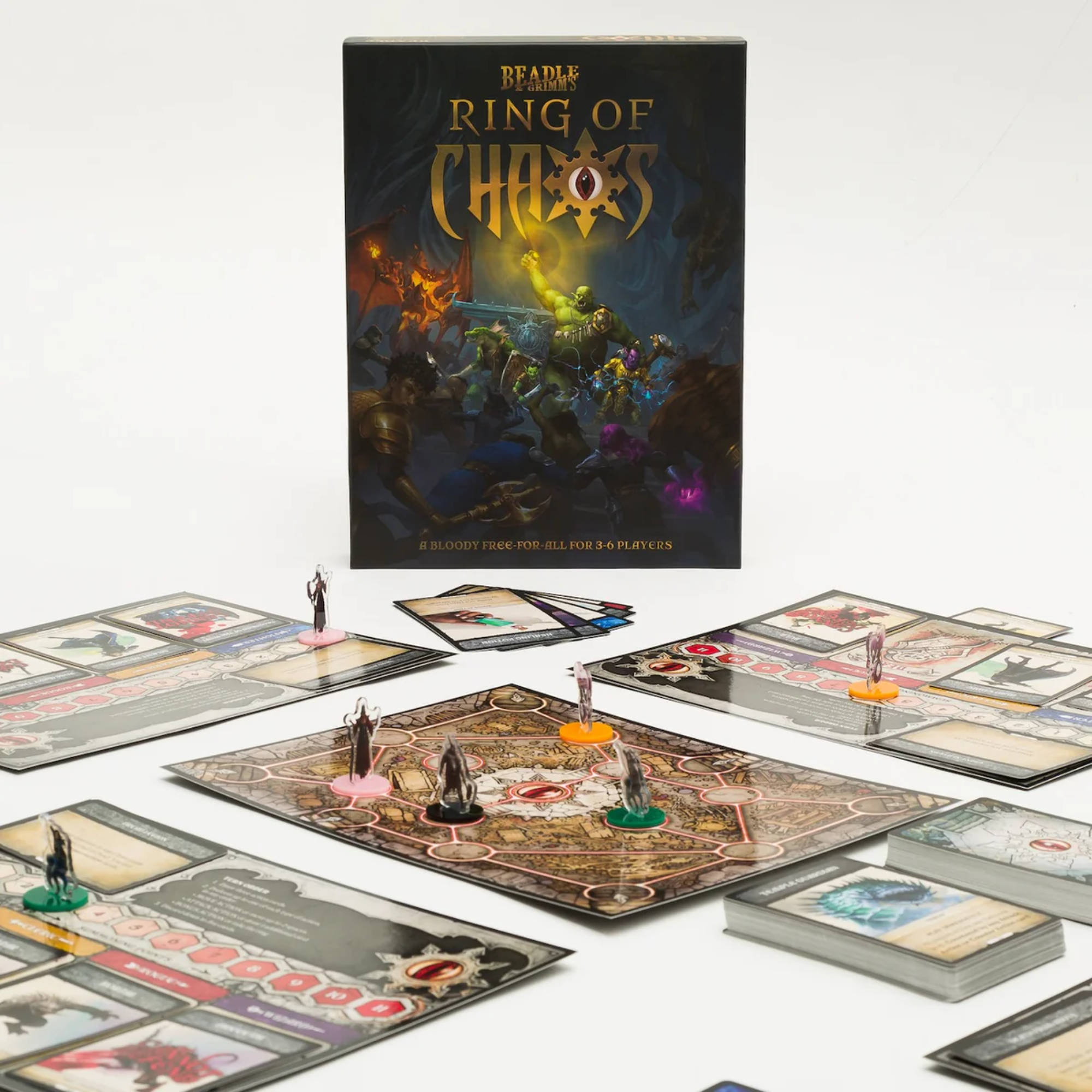 Existing only as a dark rumor for centuries, this ancient seat of chaotic magic has now been rediscovered. Within sits the legendary Ring of Chaos, a tool of unmatched power that allows the wearer to marshal the strength of the gods themselves. As a player you will command a party of four adventurers, leaders, heroes or villains. Survive the temple guardians, do battle with your competitors, and claim the all-powerful Ring for your own. Easy to learn but challenging to master, this unique blend of board game and deck-building game mechanics rewards experience, strategy… and the brute force of a good fireball.