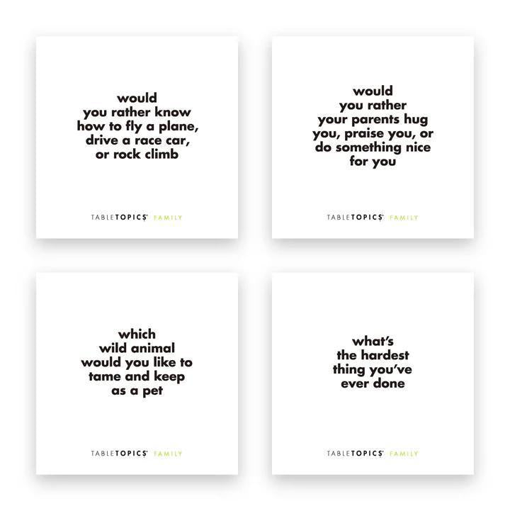 Events: Family Dinner, Family Mealtime, Everyday Conversations, Family Game Night, Children's Party Activity, Classroom Activity, Class Icebreaker