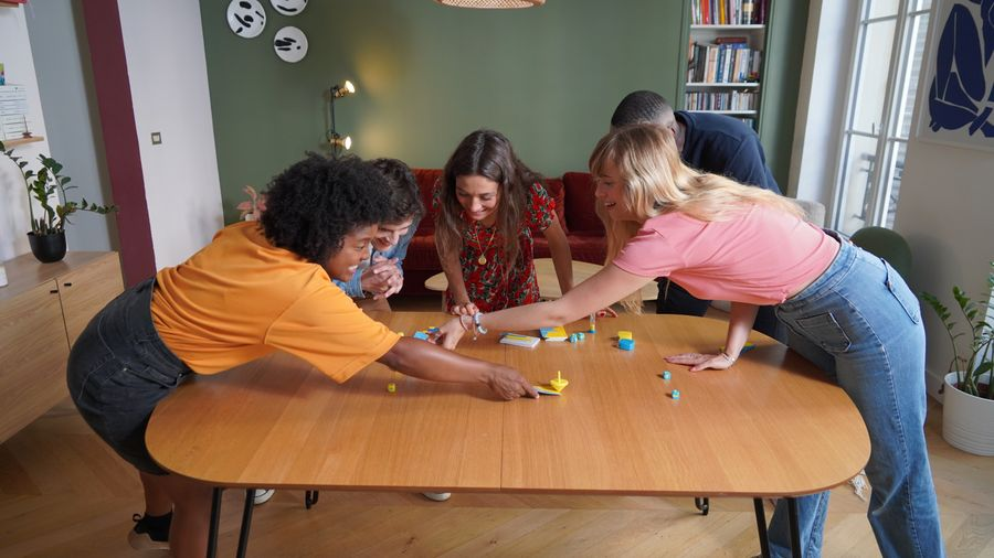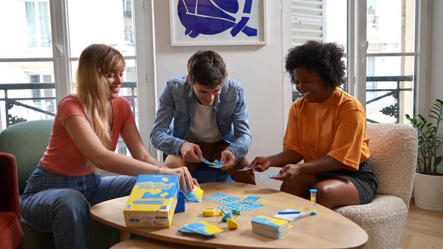 The first task will be deciding which two teams will go first: Rock paper scissors, arm wrestling, catch – you decide – we don’t want to know! The Referee team draws a card and reads it aloud. When everyone is ready, the Referee team starts the countdown by saying: “Ready? Task Team!” The two participating teams then madly scramble to win the task.