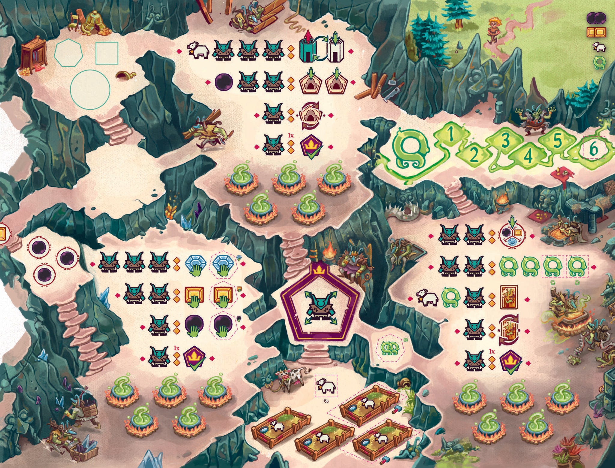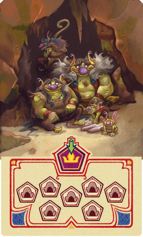 Trolls & Princesses is a “worker movement” game. You play as one of four troll clans and to get the mountains king’s favour, you try to impress him. The players get favour (in the form of victory points) when they do what trolls usually do: swap changelings, “hire” humans, tear down church bells, kidnap princesses, build their cave, and use troll magic. To succeed, the players must collect resources and move around their trolls to do different actions. The player with the most victory points at the end can crown himself the ultimate troll clan leader.