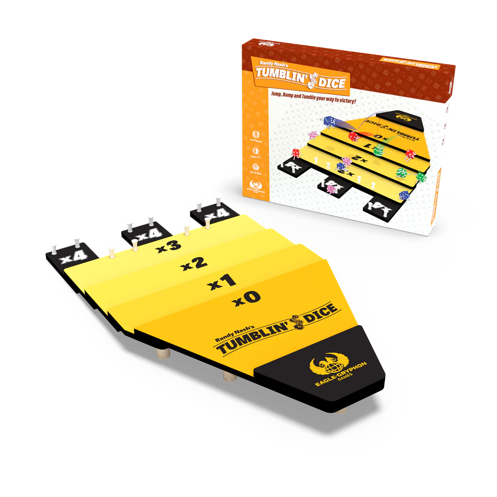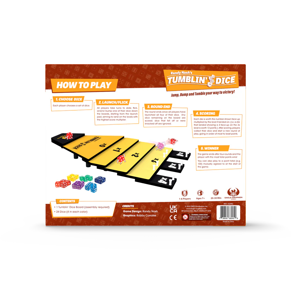 Get ready for fun with Tumblin' Dice (2022) from Eagle-Gryphon Games! This exciting game combines skill, strategy, and a bit of luck, making it a fantastic addition to your collection of modern tabletop games. In Tumblin' Dice, players take turns rolling dice and strategically positioning them on a multi-level board to score points. Each player's ability to balance skillful rolls with calculated placements is essential in outmaneuvering opponents.