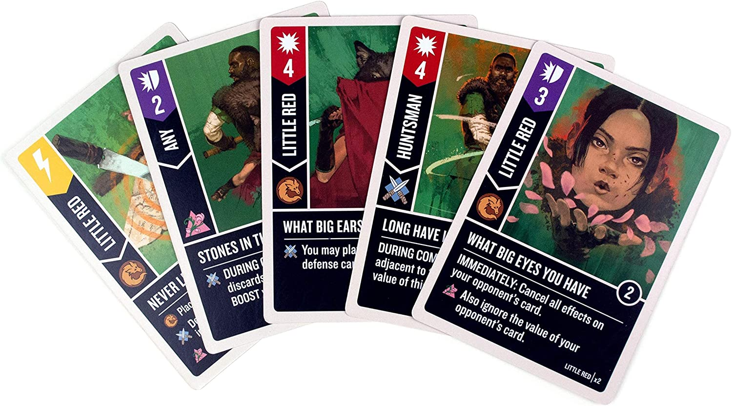 Unmatched is a highly asymmetrical card-driven miniature fighting game featuring heroes from myth and legend. Little Red Riding Hood vs. Beowulf includes those two heroes to fight against each other or mix-and-match with any other Unmatched set.