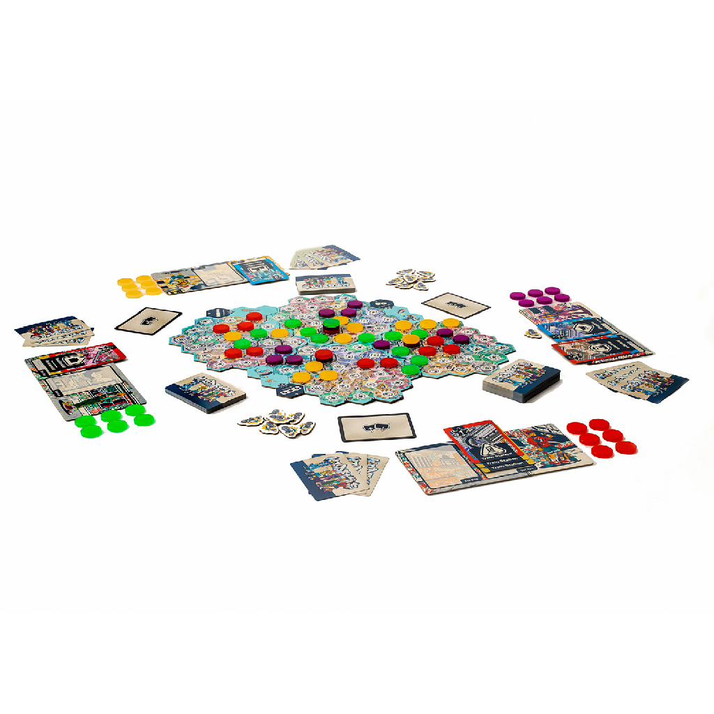 Wildstyle is a competitive game for 2-5 players played in real time. Quickly grab the cards you need to claim different districts of the town. As your crew takes over train stations, residential blocks and industrial wastelands, try to complete objectives and maximize your score. This fast and frenetic game is sure to be a hit with gamers of all ages.