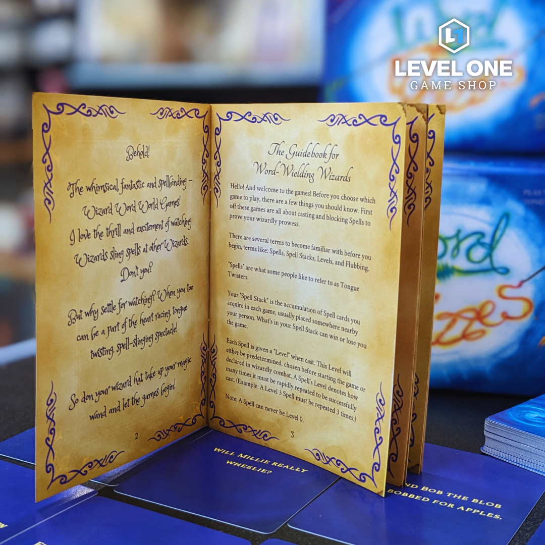 Choose from five games that will put your tongue to the test. Chellenge your fellow Wizarrds too great duels of Spell-slinging, tongue-twisting acrobatics. Team up to save your town from the evil, tyrannical warlock, Ranlok the Prideful. Astound onlookers with you Flubless performance as you leave them jaw dropped and tonue tied.