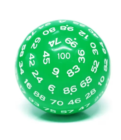 "Green Apple" - Green Opaque with White Inking - D100 - Level One Dice