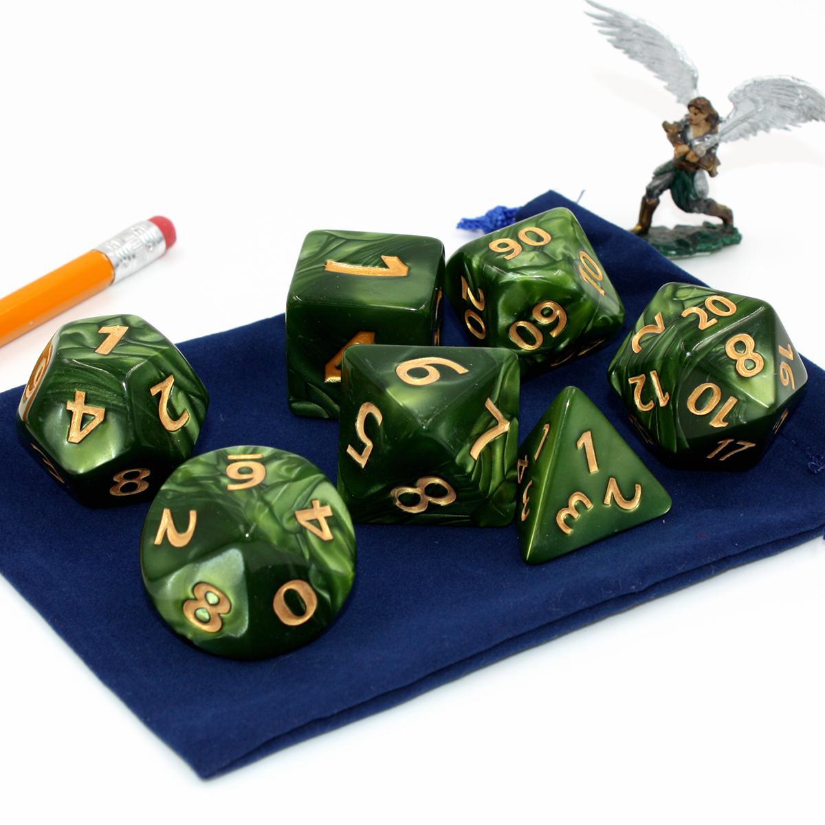 "Green Olive" - Green Marble with Yellow - Giant Polyhedral Dice (7) - Level One Dice