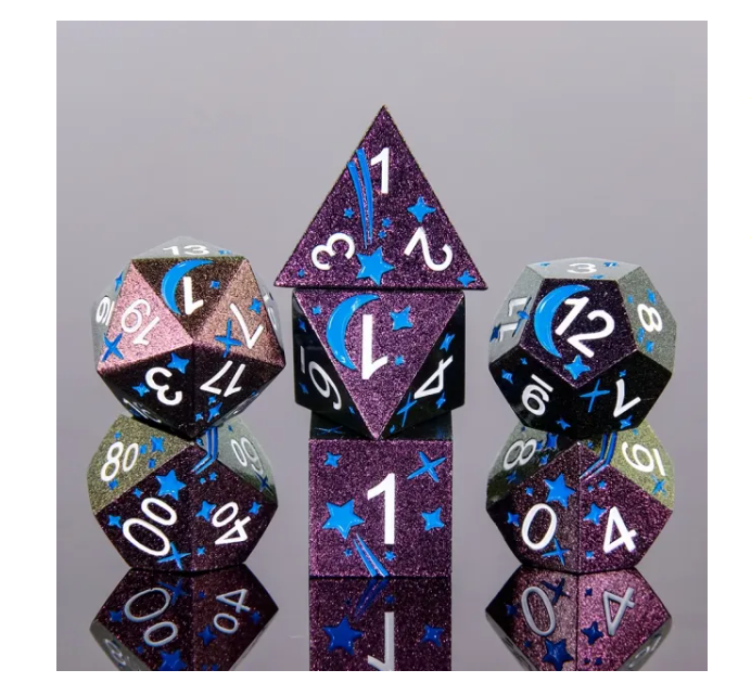 "Blueberry Comets" - Purple and Blue - Metal Dice (7) - Level One Dice