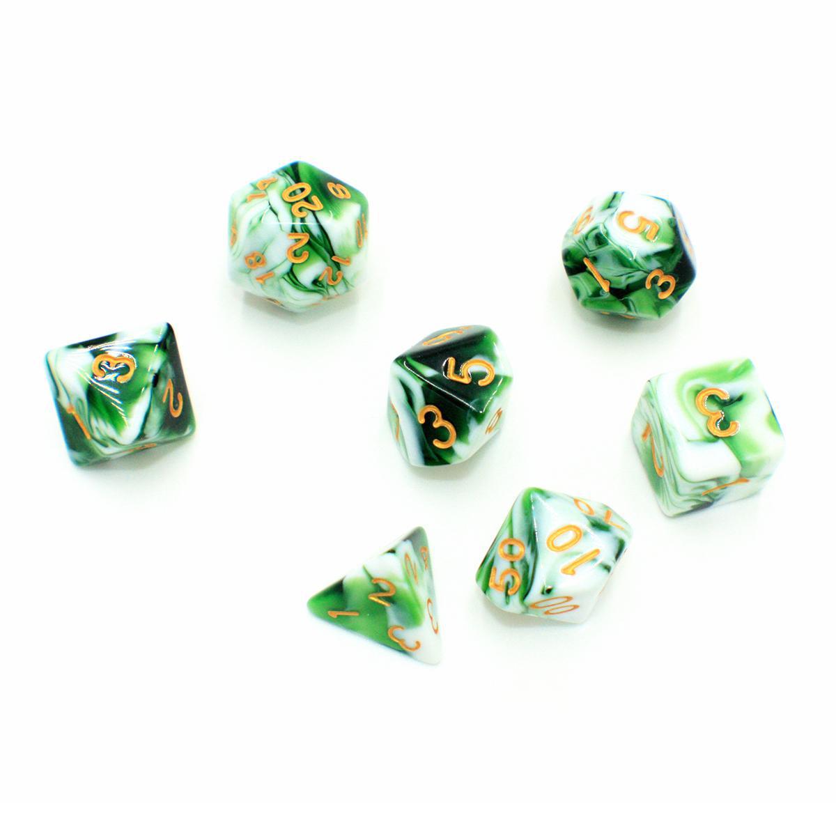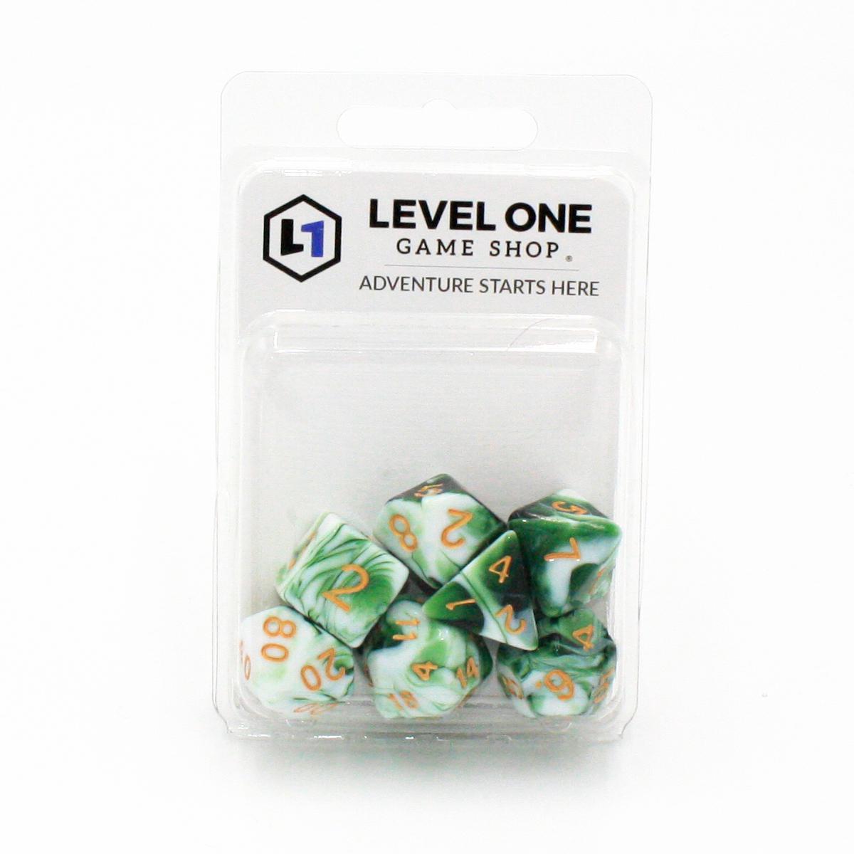 "Matcha Latte" - Green and White with Gold Swirl - Polyhedral Dice (7) - Level One Dice