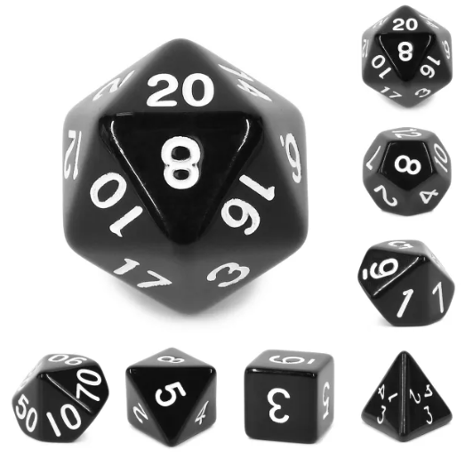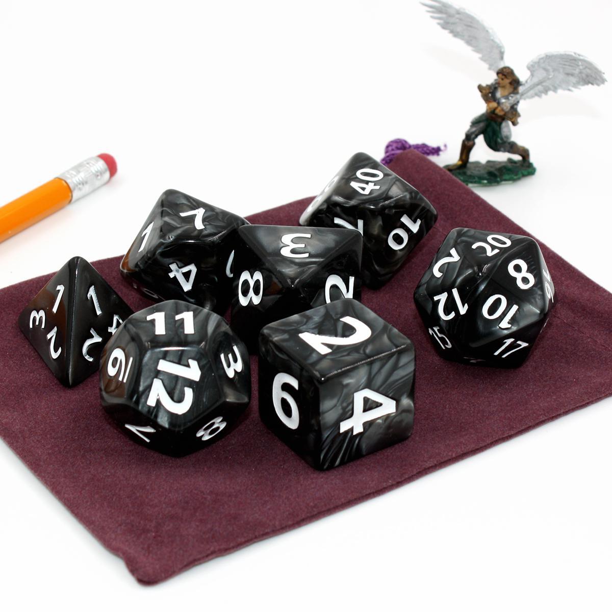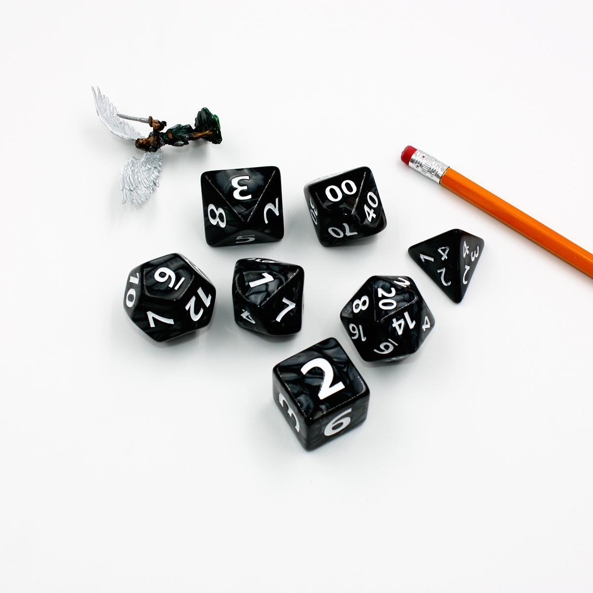 "Black Tapioca" - Black Marble with White - Giant Polyhedral Dice (7) - Level One Dice