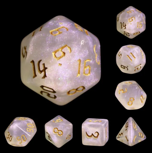 "Spectral Tonic" - Irridescent White Swirl with Gold Ink - Polyhedral Set (7) - Level One Dice