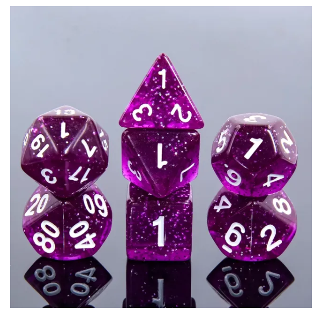 "Grape Gumdrop" - Purple Glitter With White Inking - Polyhedral Dice (7) - Level One Dice