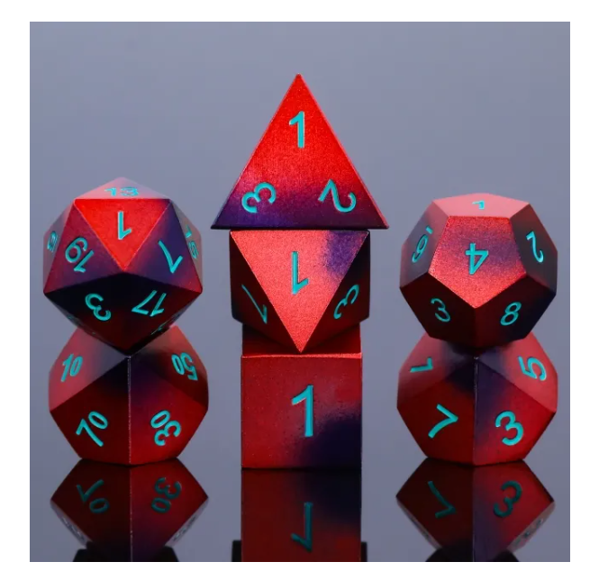 "Infrared Blues" - Red and Purple with Blue - Metal Dice (7) - Level One Dice