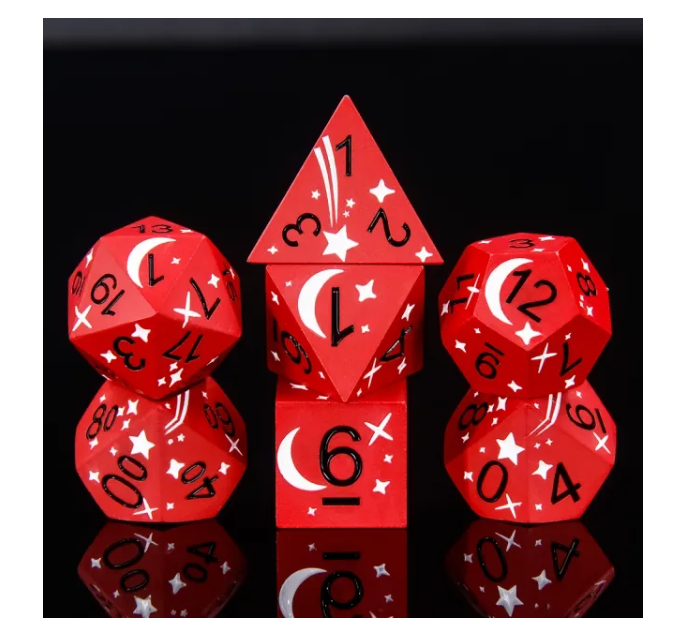 "Crimson Cosmos" - Red and White - Metal Dice (7) - Level One Dice