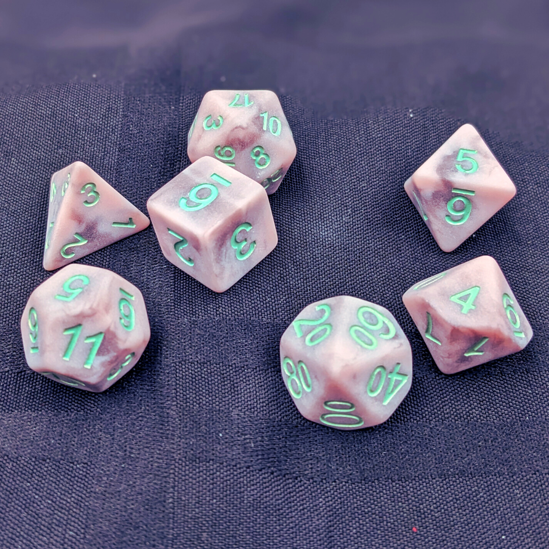 "Polishing Paste" - Faded Pink with Green - Polyhedral Dice (7) - Level One Dice