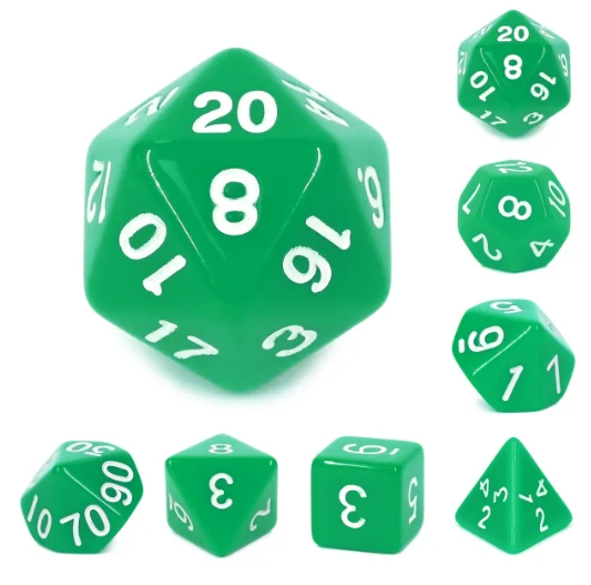 "Watermelon Brine" - Green with White Inking - Polyhedral Dice (7) - Level One Dice