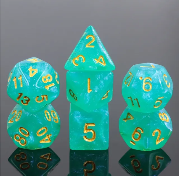 "Water Breathing Potion" - Teal Glitter with Gold Inking - Polyhedral Set (7) - Level One Dice