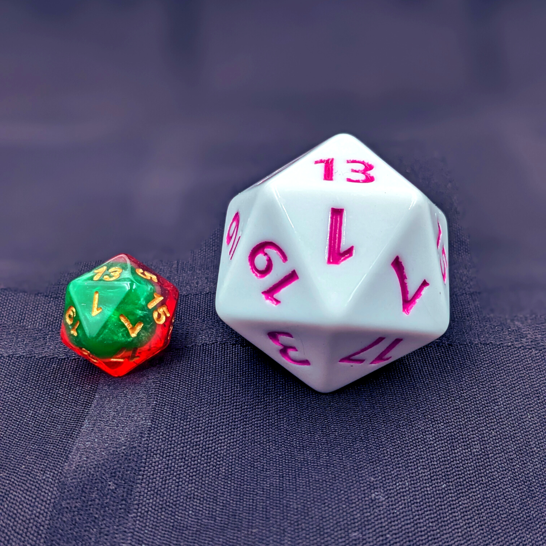 "Eros' Wish" - 40mm Titan Dice - White Opaque with Lilac - Level One Dice