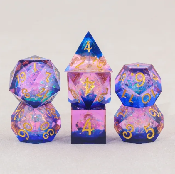 "Sugar Dreamland" Blue and Pink - Polyhedral Dice (7) - Level One Dice