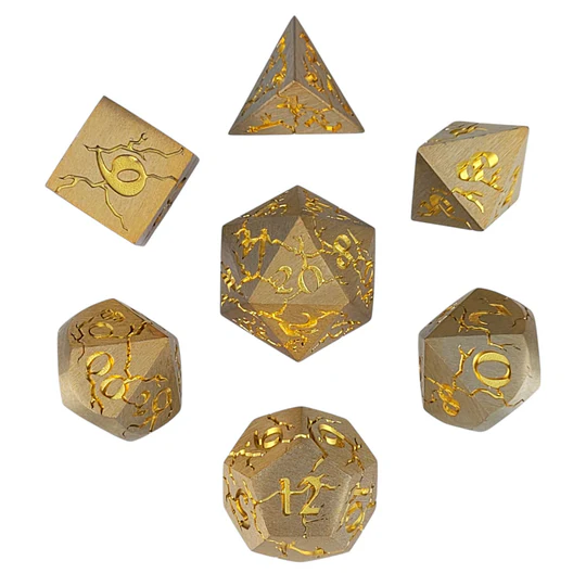 This heavy duty set of 7 polyhedral die are made of solid METAL