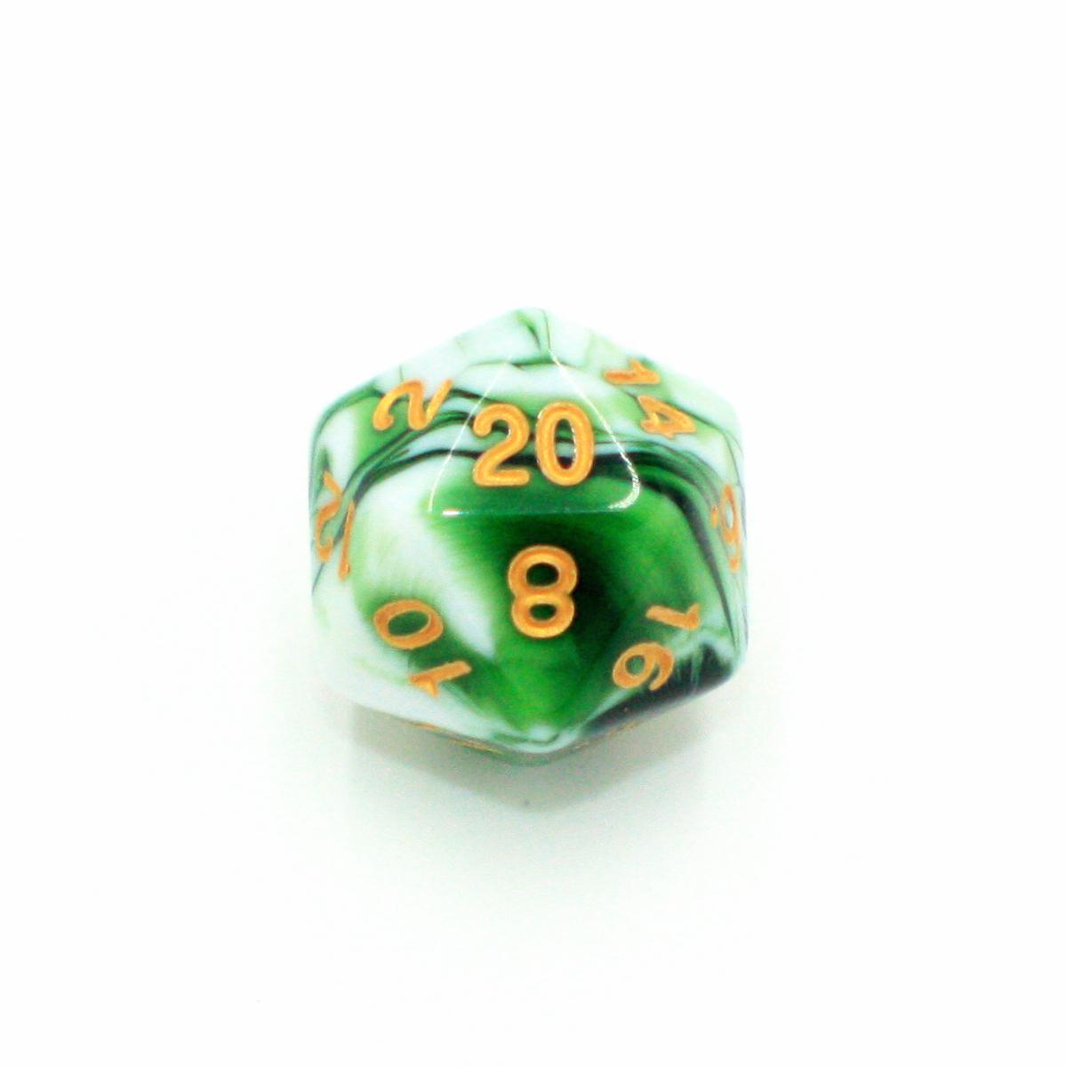 "Matcha Latte" - Green and White with Gold Swirl - Polyhedral Dice (7) - Level One Dice