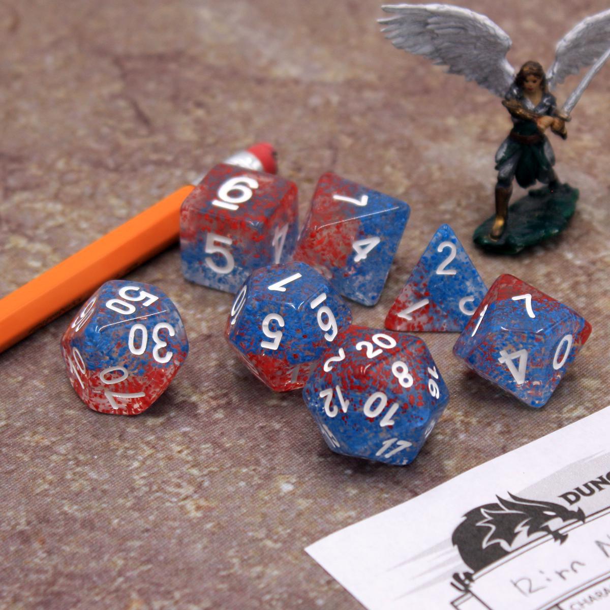 • "Patriotic Popsicle" - Red White and Blue Particle - Polyhedral Dice (7) - Level One Dice