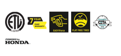 21" corrosion-resistant stainless steel surface cleaner housing and a professional grade swivel design for extended, effortless use. Reliable Honda GX engine with three-year warranty. Flat free tires