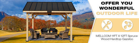 【Premium Spruce Wood】Spruce wood has a tough texture, uniform color and perfect grain lines. The natural log color is in harmony with the outdoor scenery. Spruce wood has a natural woody aroma, which makes the spruce wood pavilion have a good antiseptic function.