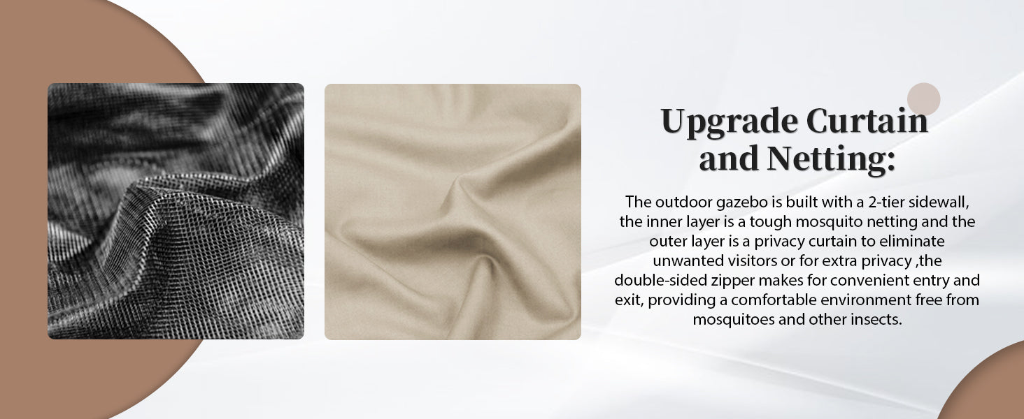 - 【NETTING & CURTAINS】- Fully enclosed zippered double layer sidewall protect you from UV rays while adding more privacy.Gazebo canopy also has a double track system which allows you to slide each layer with ease.Netting zipper at four sides to give your family and children safe and cozy surroundings.