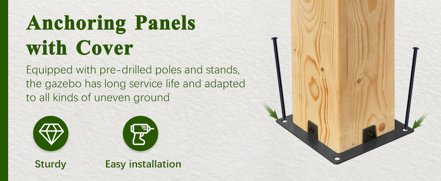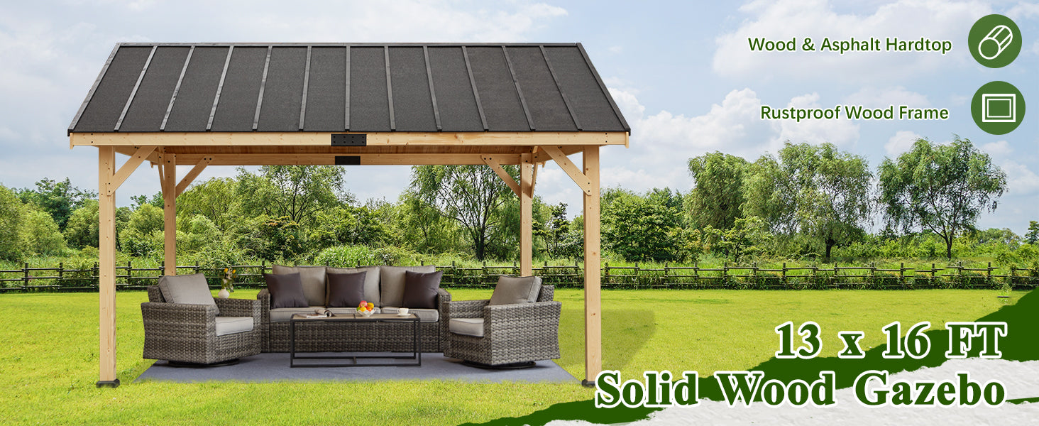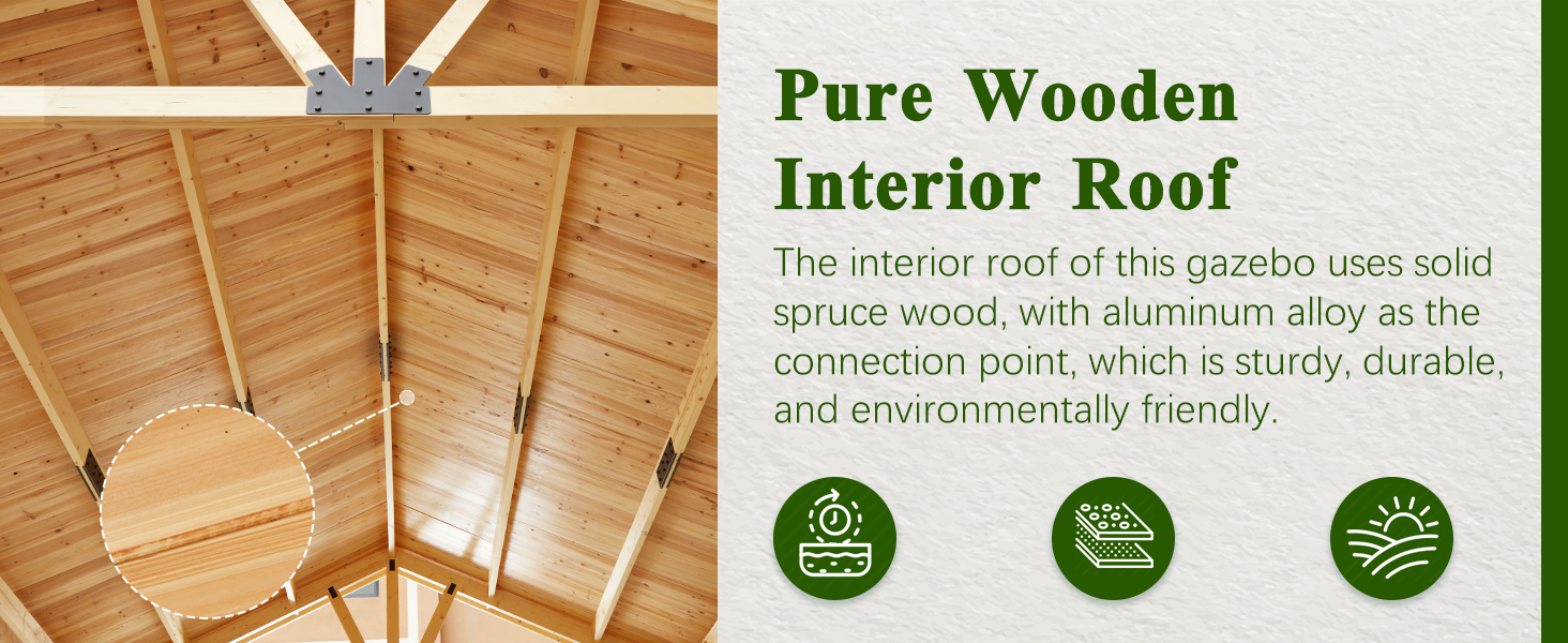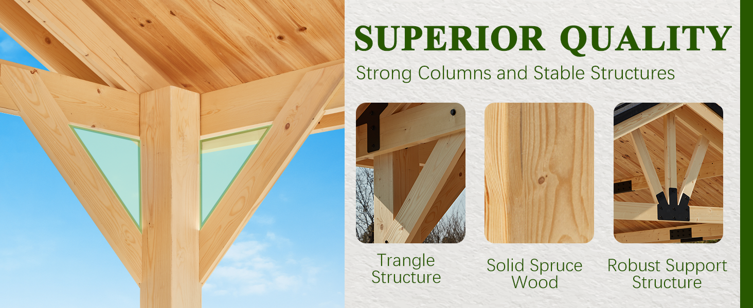 - ☀️【Natural Spruce Material】- Made from premium spruce wood, our patio gazebo retains its original wood texture while also being treated with oil immersion and coating to resist corrosion, rain, snow, and wind. This increases the life and stability of the wood, making it a durable choice for outdoor use